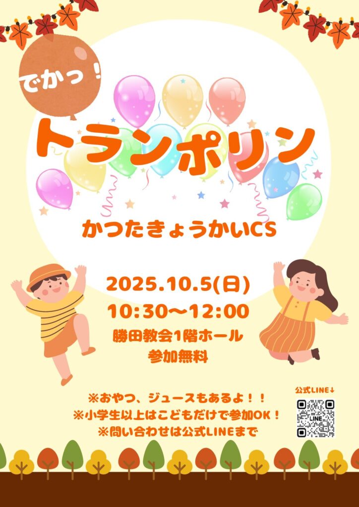 2025年9月27日 / 最終更新日時 : 2025年9月28日 管理人 お知らせ トランポリンを楽しもう(2025年10月5日(日)) <お問合せ/日本基督教団 勝田教会> 〒312-0052 茨城県ひたちなか市東石川3-5-1 TEL: 029-274-0181