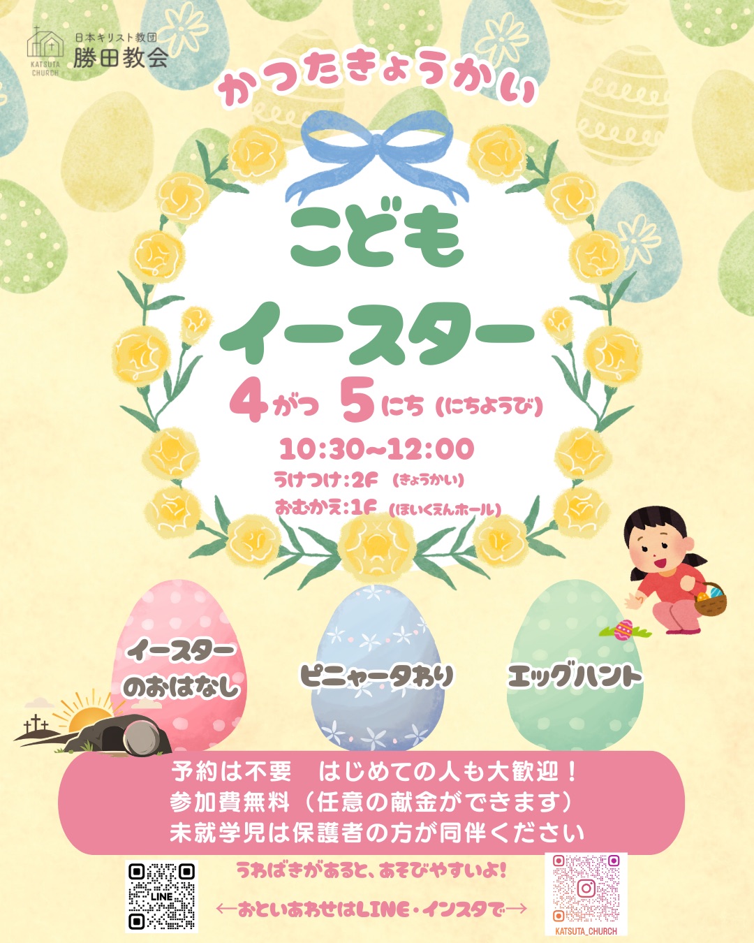 2026年3月22日 / 最終更新日時 : 2026年3月22日 管理人 お知らせ こどもイースター(2026年4月5日(日)) <お問合せ/日本基督教団 勝田教会> 〒312-0052 茨城県ひたちなか市東石川3-5-1 TEL: 029-274-0181